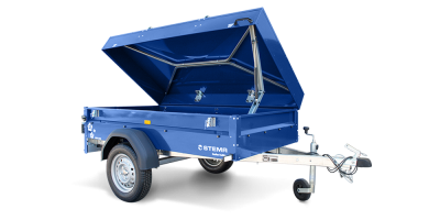 A tampa metálica com fechadura também protege a carga contra intempéries e furtos. Além disso, a tampa é resistente a respingos e possui um bagageiro que permite uma carga adicional de até 50 kg. O STEMA FT está disponível em diversas versões, incluindo modelos com e sem freio. Graças às suas dimensões compactas e à opção de armazenamento na vertical, ele economiza espaço e é ideal para uso particular, camping ou transporte de equipamentos esportivos e de lazer.