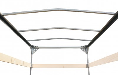 A estrutura alta soldada e galvanizada a quente possui um tejadilho leve em formato de cume, permitindo um bom escoamento da água.