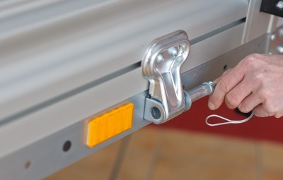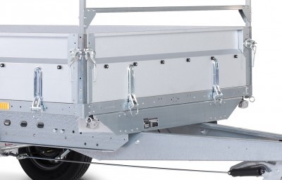 As peças móveis estão sujeitas a um desgaste maior. Por isso, damos especial atenção à máxima estabilidade e durabilidade. Todos os atrelados SySTEMA® com laterais são equipados com dobradiças robustas e fechos profissionais de alavanca angular em aço fundido.