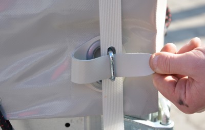 - Trilho já integrado no perfil de alumínio para pendurar ganchos de lona.